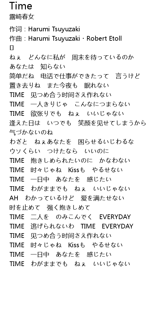 | 作词:Harumi Tsuyuzaki | |