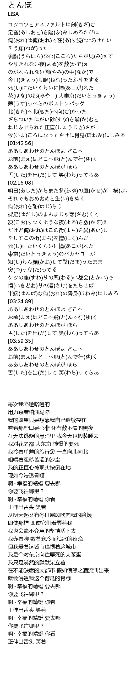 | [03:28.00] | ああしあわせのとんぼよ どこへ |
