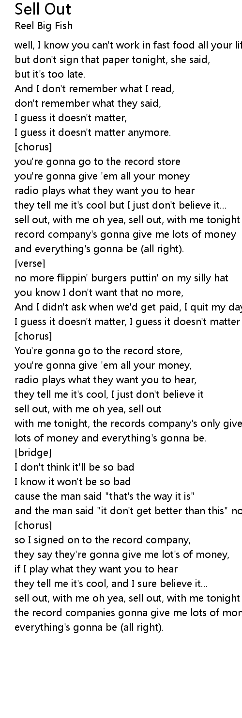 sell out, with me oh yea, sell out