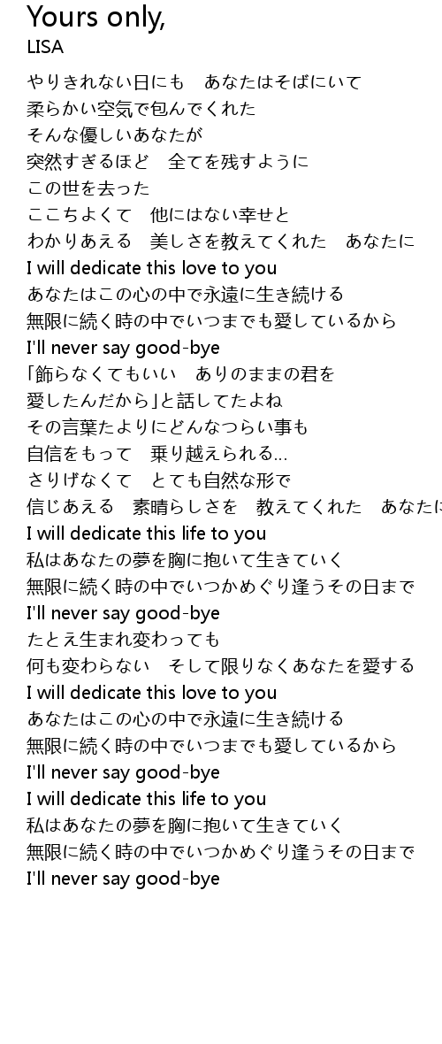 | 歌曲 | Yours only, |