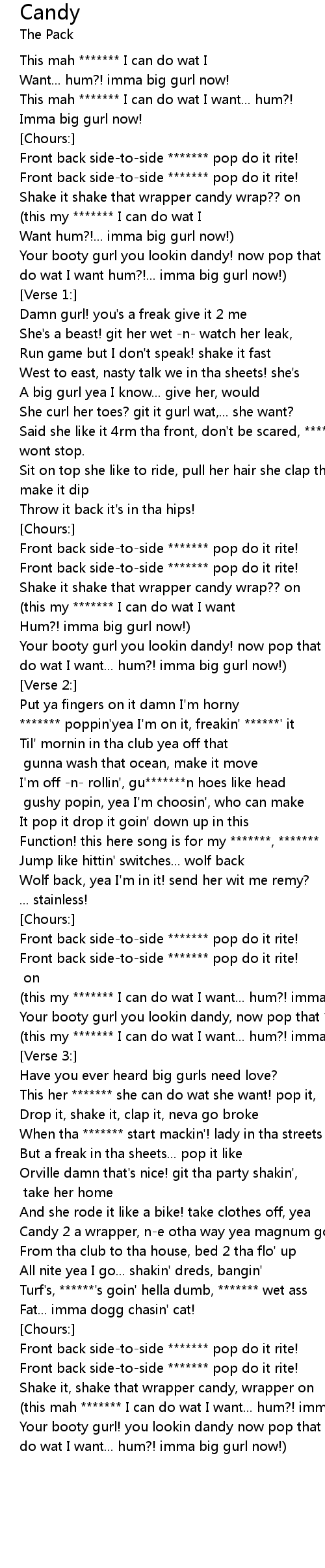 Your booty gurl! you lookin dandy now pop that *******! (this my ******* I can do wat I want... hum?! imma big gurl now!) |