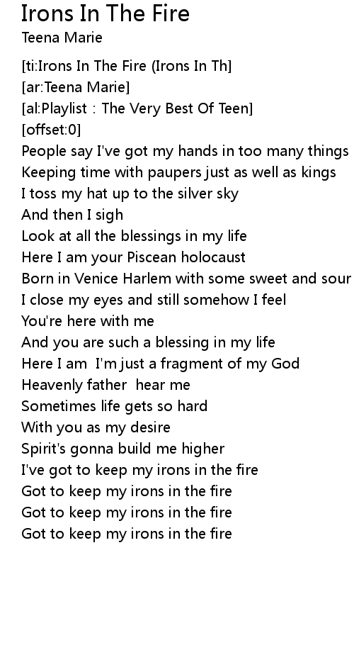 | [02:24.84] | I' ve got to keep my irons in the fire |