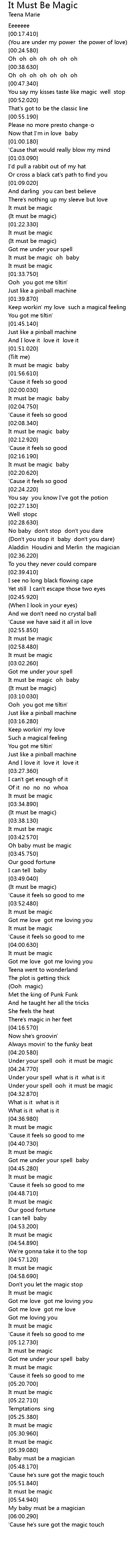 It must be magic oh baby |