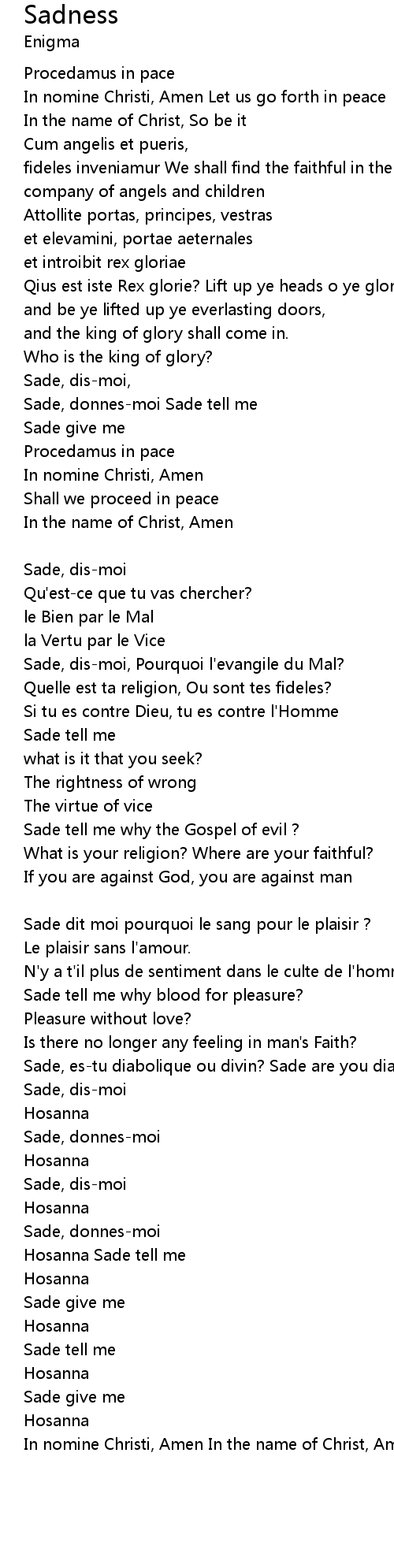 Sade, dis-moi |