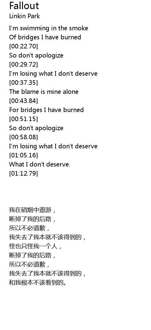 | [00:45.21] | For bridges I have burned |