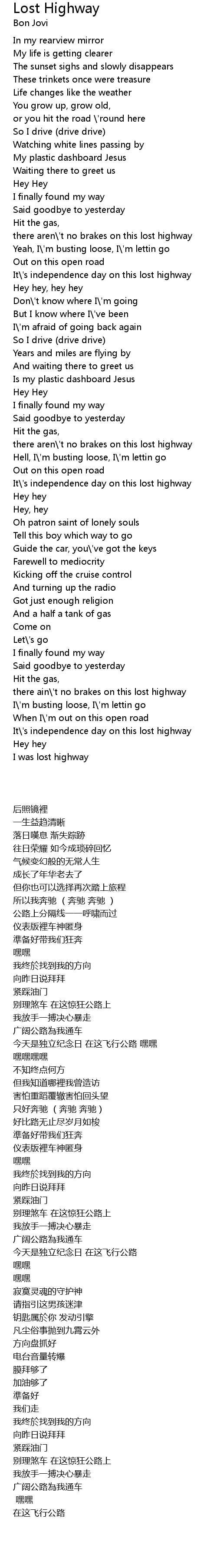 there ain\'t no brakes on this lost highway |