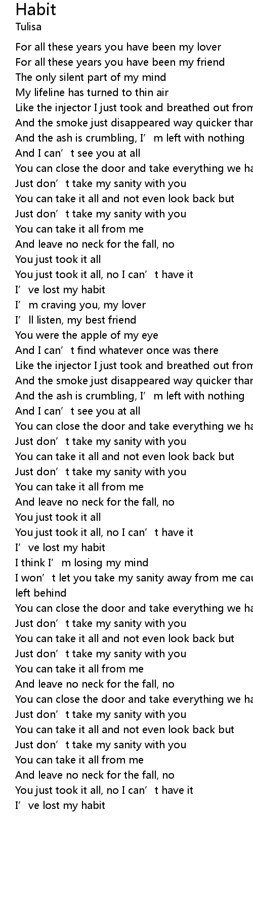 | I' ve lost my habit | |