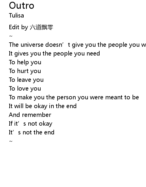 | 歌曲 | Outro |