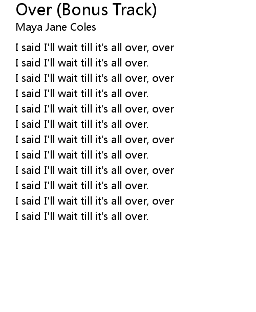 | I said I'll wait till it's all over, over | |