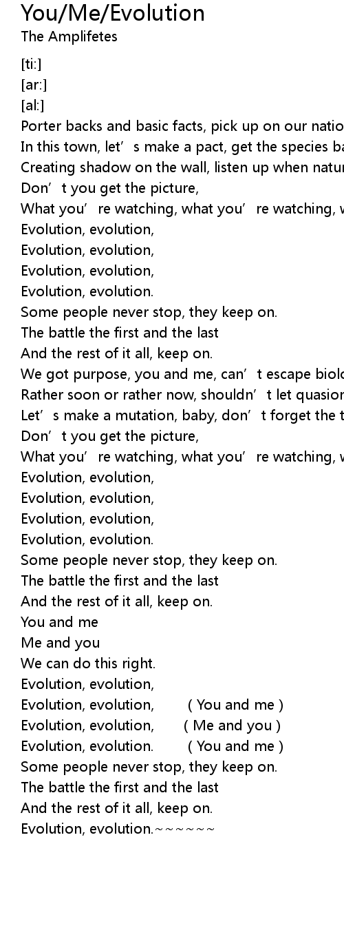 | [02:49.54] | Evolution, evolution, (Me and you) |