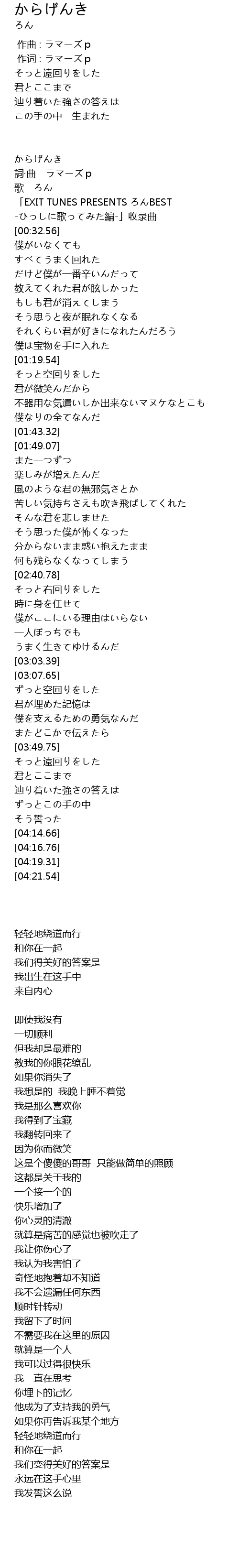 | [00:32.08] | 「EXIT TUNES PRESENTS ろんBEST -ひっしに歌ってみた編-」收录曲 |