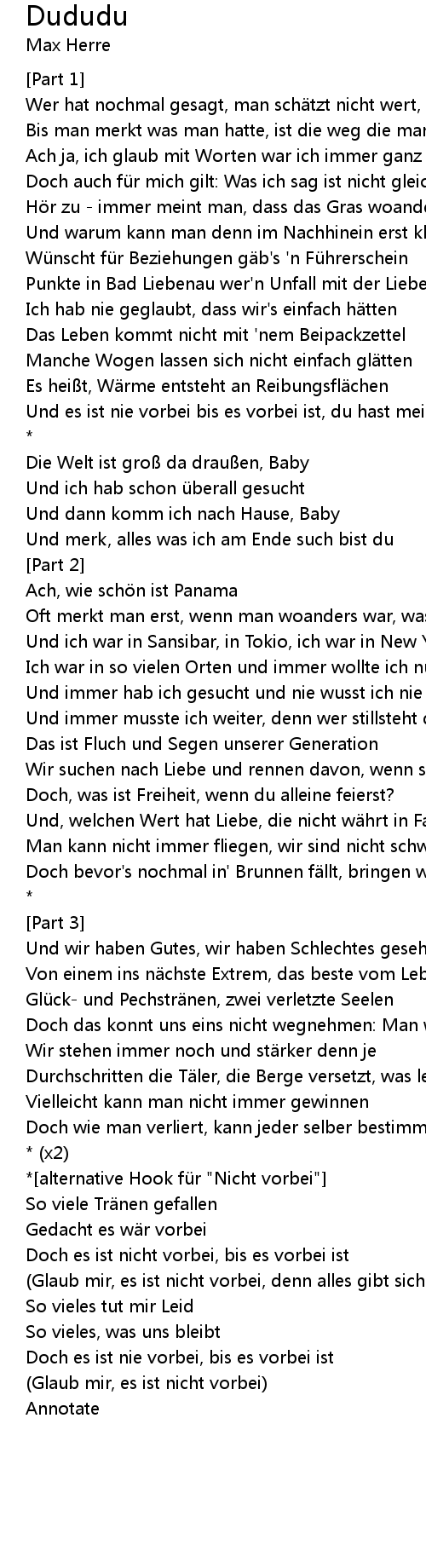 | *[alternative Hook für "Nicht vorbei"] | |