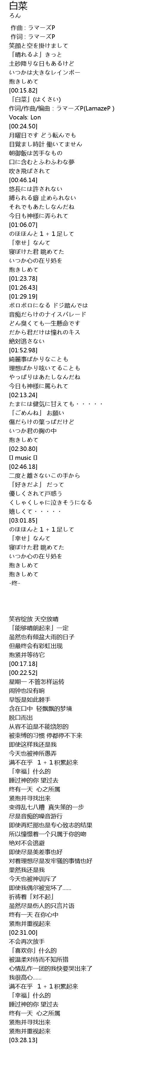 | [00:17.18] | 「白菜」(はくさい) |