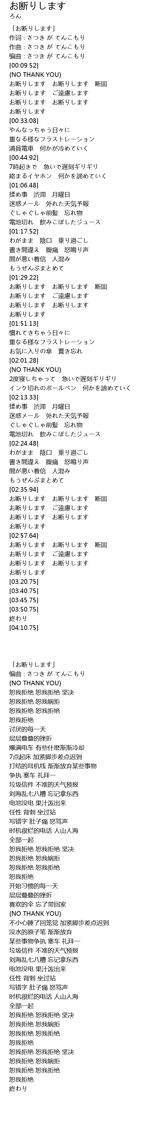 | [00:17.16] | 恕我拒绝 恕我婉拒 |