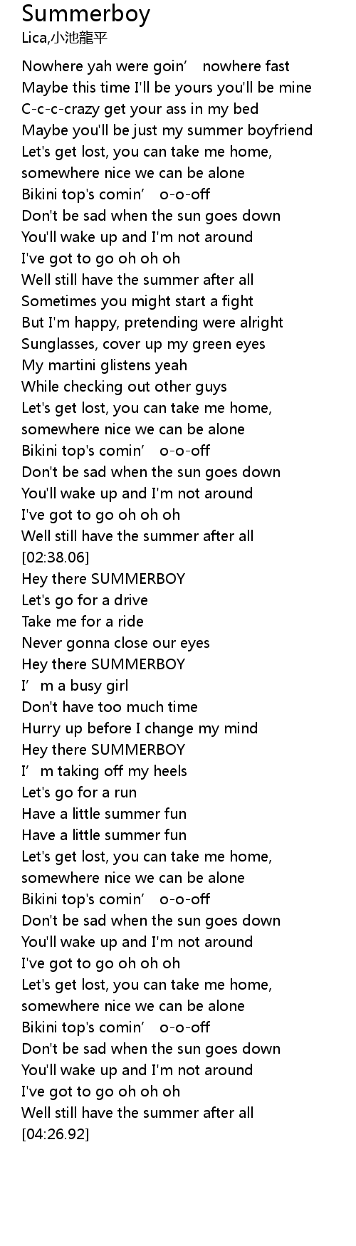 | [03:23.99] | Hey there SUMMERBOY |