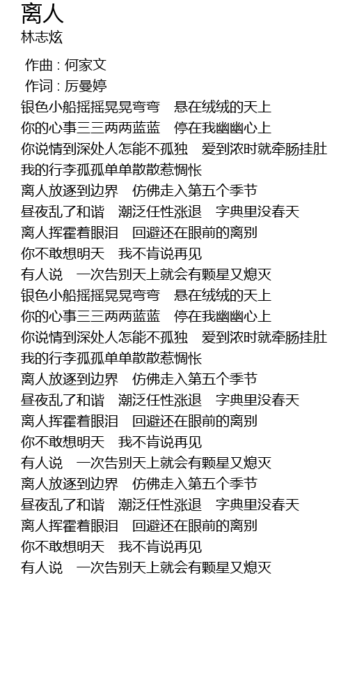 | [04:11.186] | 离人挥霍着眼泪 回避还在眼前的离别 |