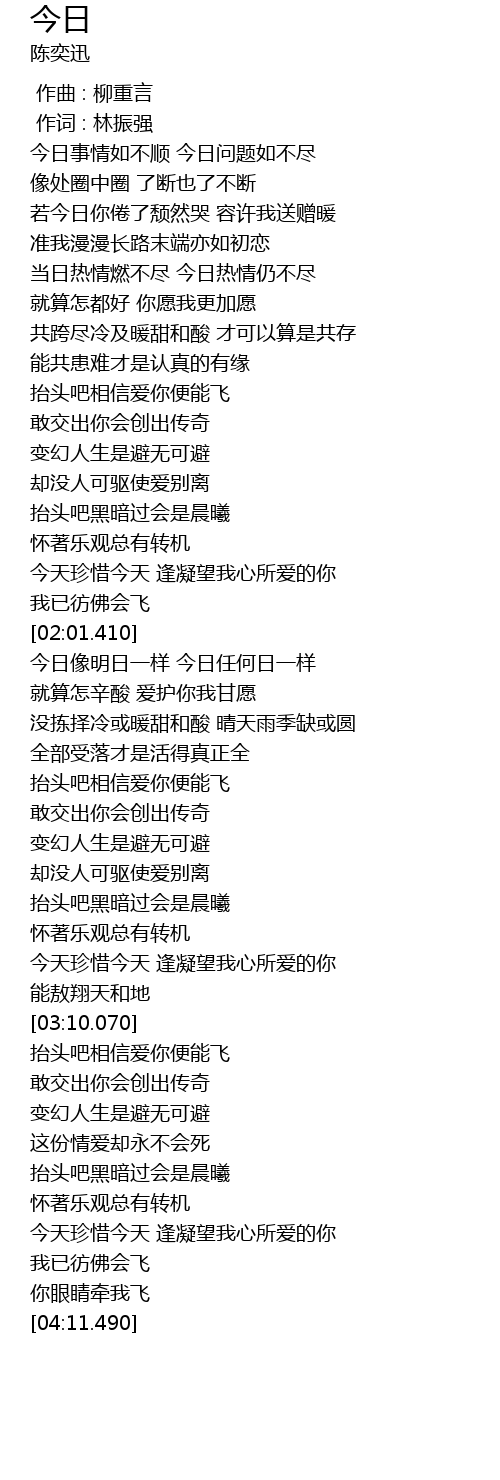 | [02:54.750] | 今天珍惜今天 逢凝望我心所爱的你 |