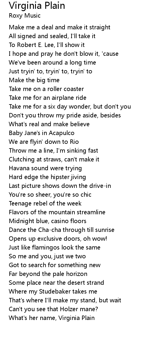 What's her name, Virginia Plain |