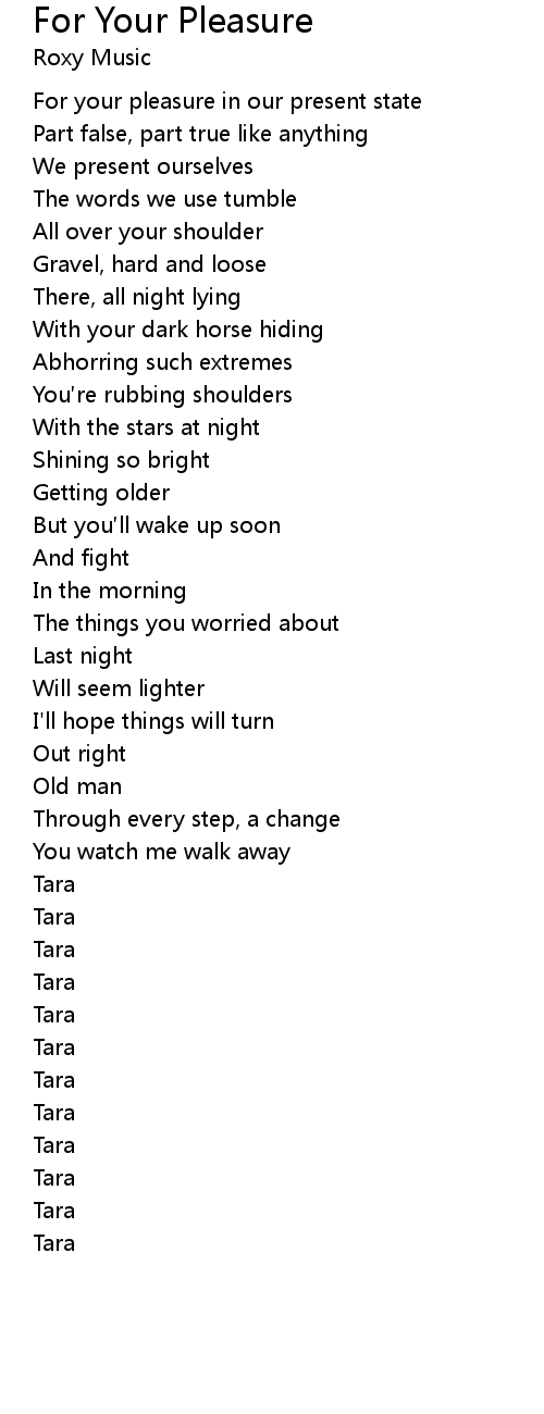 | [00:06.84] | For your pleasure in our present state |