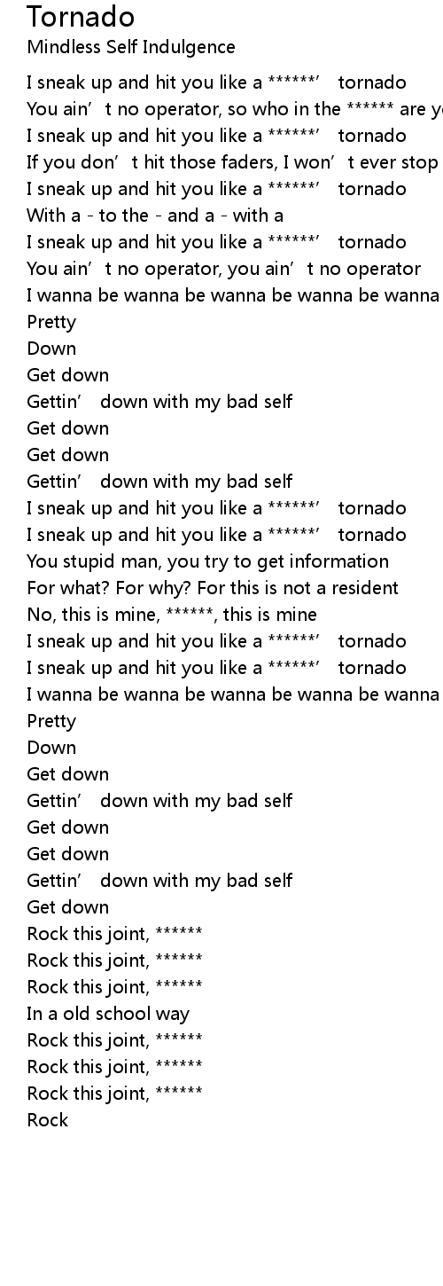 | I sneak up and hit you like a ******’ tornado | |