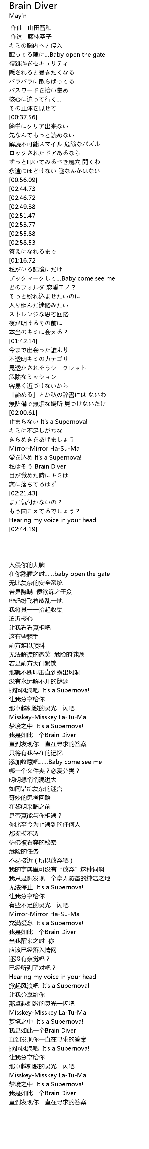 | [03:14.47][02:55.88][01:07.57] | sī Brain Diver |