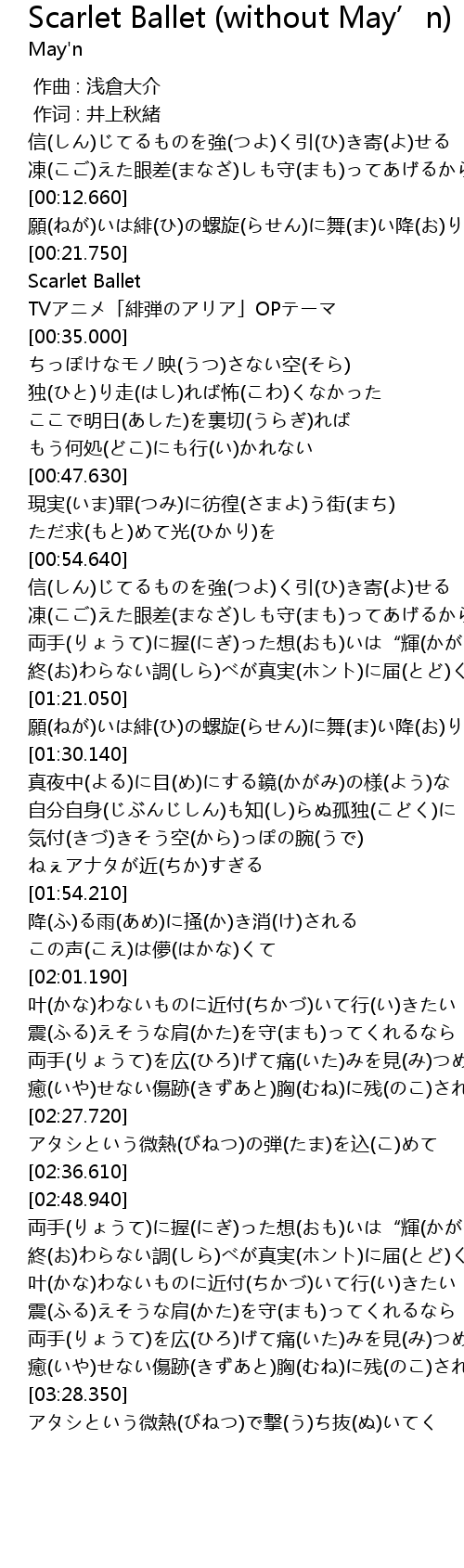 | [00:25.000] | TVアニメ「緋弾のアリア」OPテーマ |