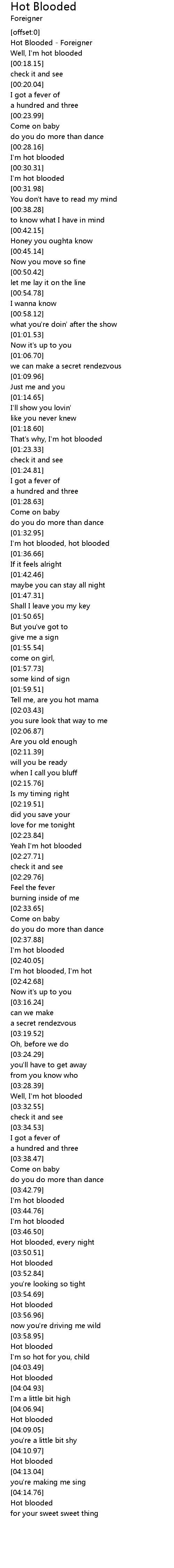 Hot blooded, every night |
