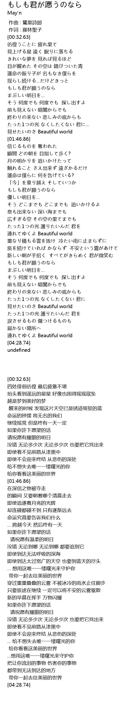 | [02:56.19] | 連れてゆくよ Beautiful world |