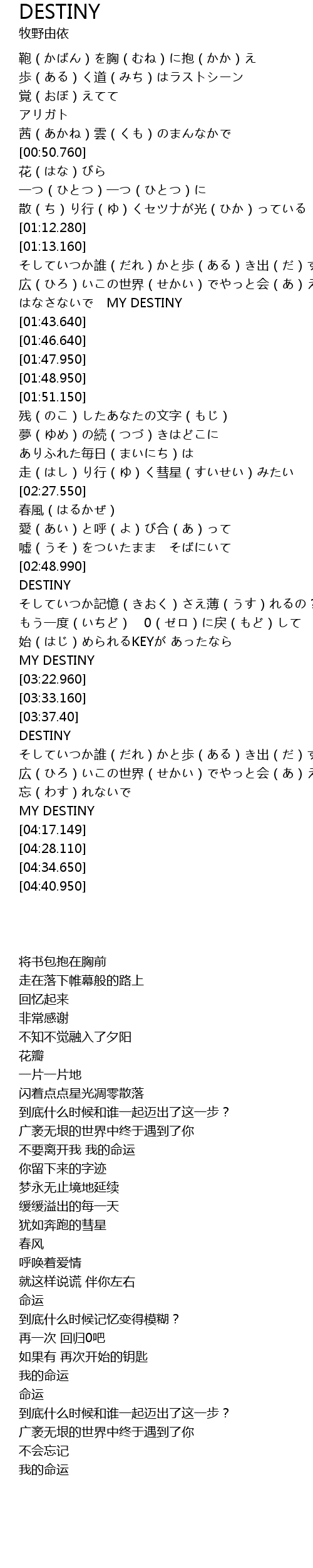 | [01:35.390] | MY DESTINY |