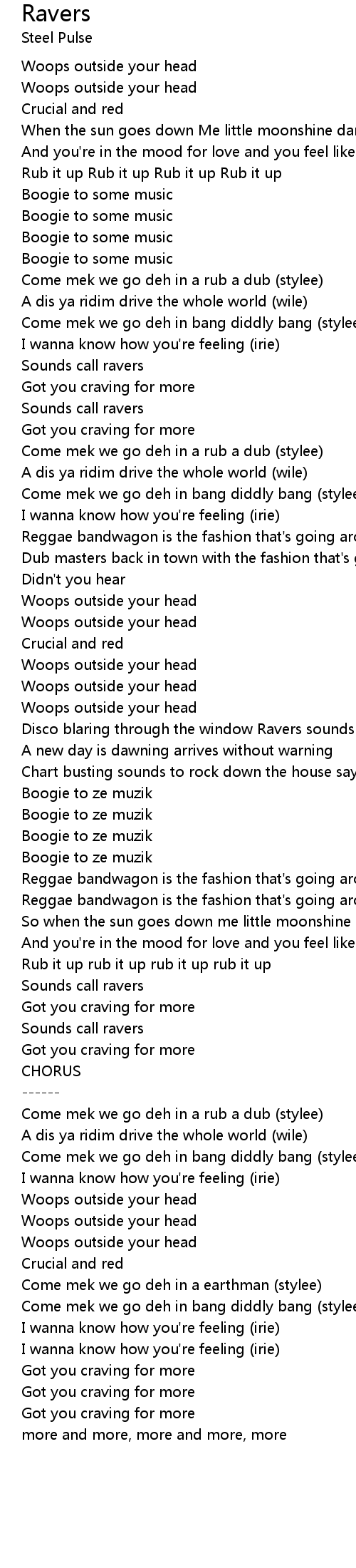 Come mek we go deh in a rub a dub (stylee) |