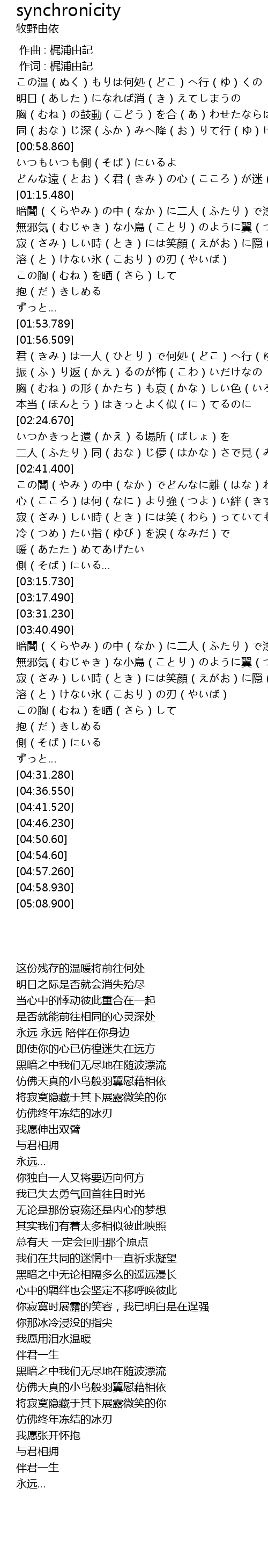 | [00:45.820] | 胸(むね)の鼓動(こどう)を合(あ)わせたならば |