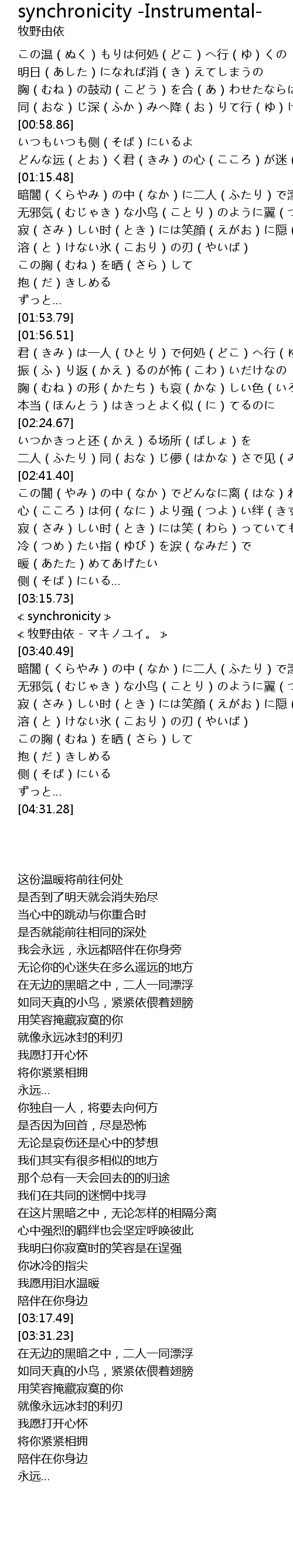 | [03:31.23] | ≮ 牧野由依 - マキノユイ。 ≯ |