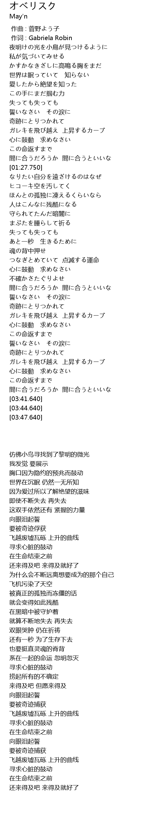 | [03:19.740] | 飞越废墟瓦砾 上升的曲线 |