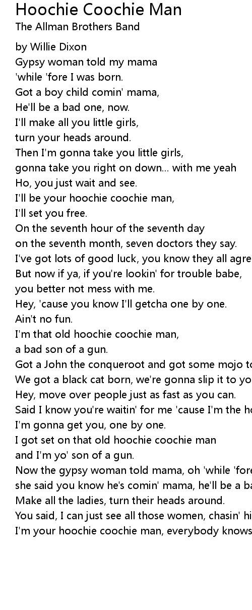Said I know you're waitin' for me 'cause I'm the hoochie coochie man.