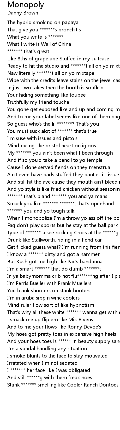 When I monopolize I'm a throw yo ass off the boardwark |