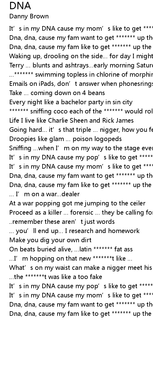 | Dna, dna, cause my fam like to get ******* up the same way. |