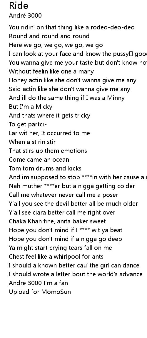 | [00:38.100] | Hope you don't mind if I **** wit ya beat |