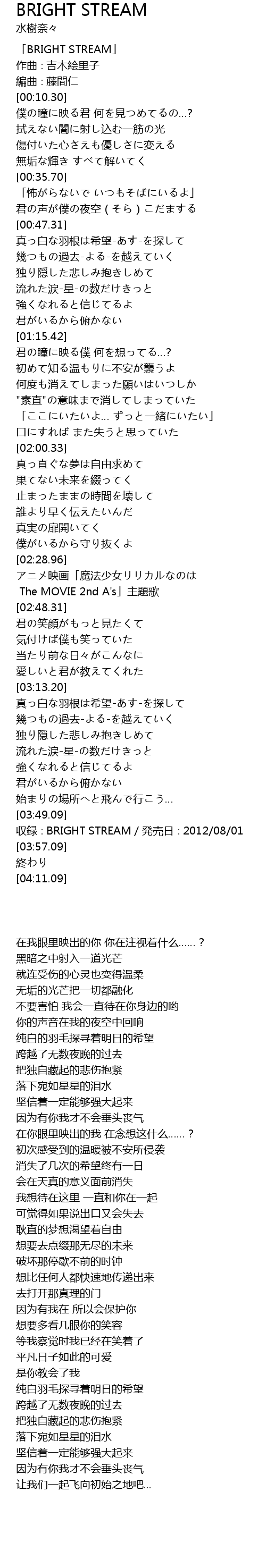 | [03:52.09] | shou lu BRIGHT STREAM fa mai ri 2012 08 01 |