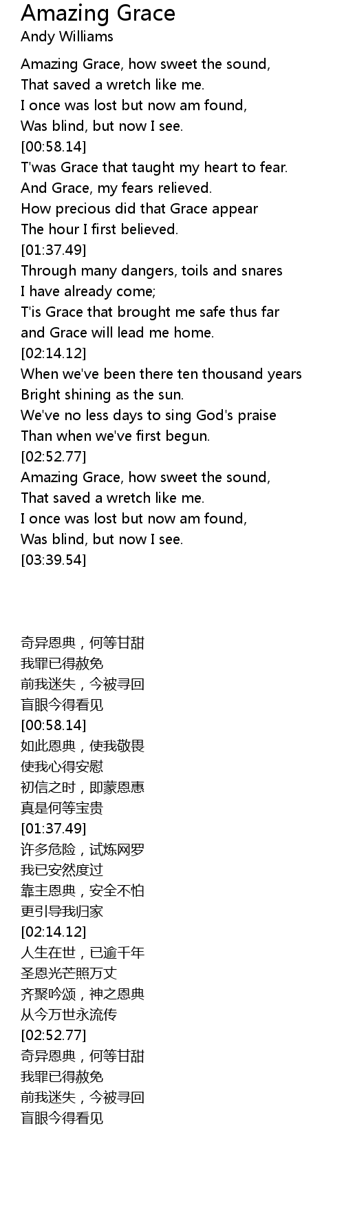 Amazing Grace, how sweet the sound, |