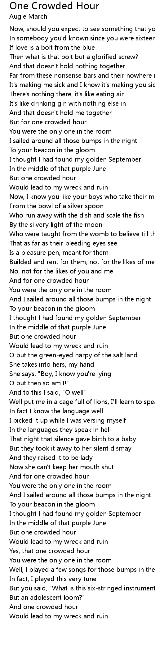 And one crowded hour |