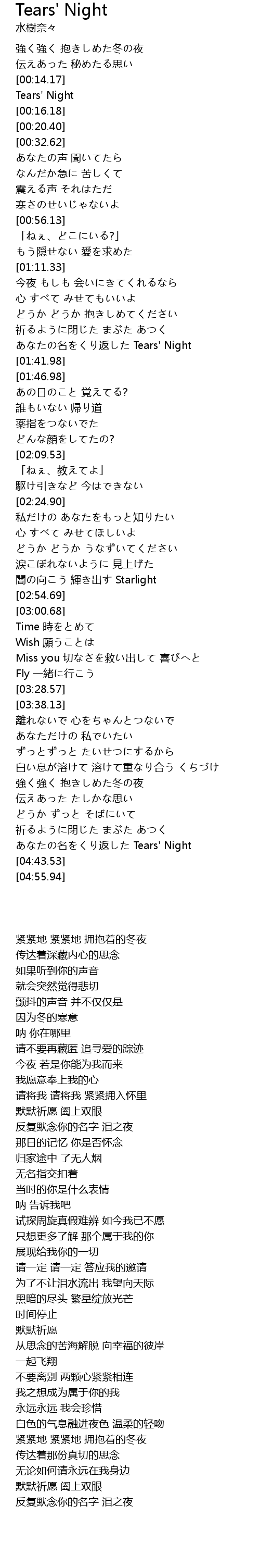 | [01:32.97] | あなたの名をくり返した Tears' Night |
