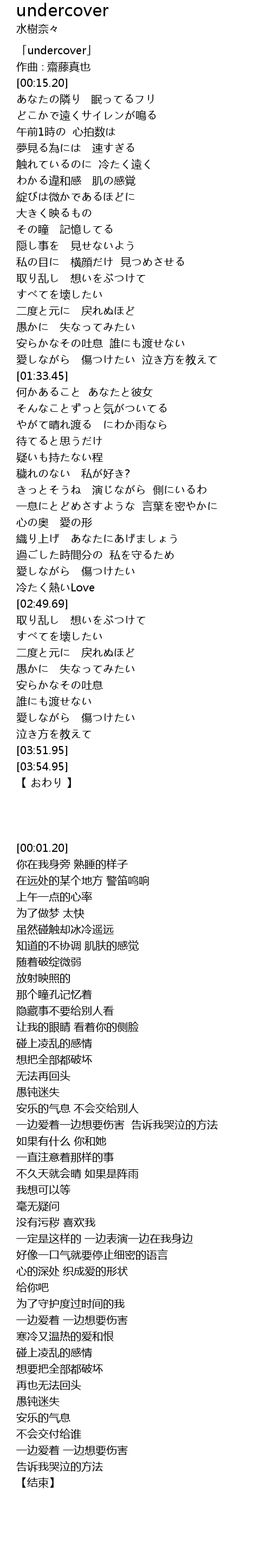 | [00:01.20] | 「undercover」 |