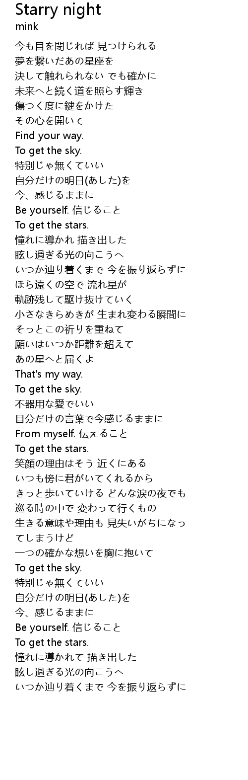 | 歌曲 | Starry night |
