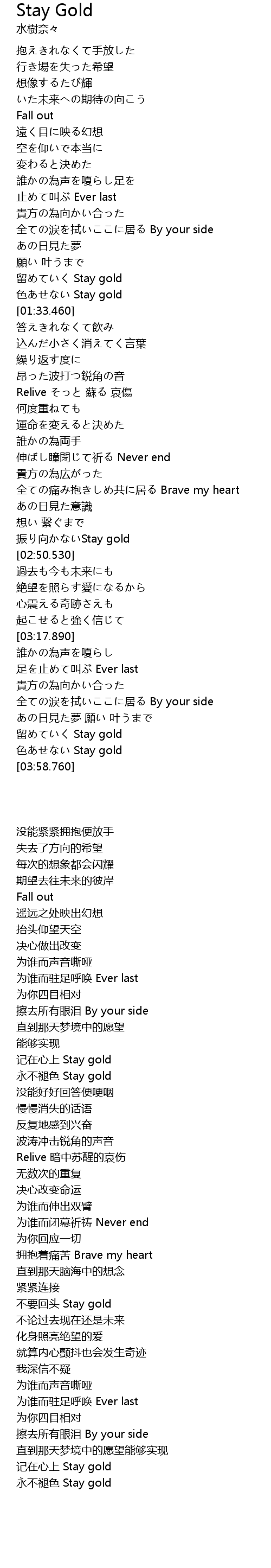 | [03:50.500] | 永不褪色 Stay gold |