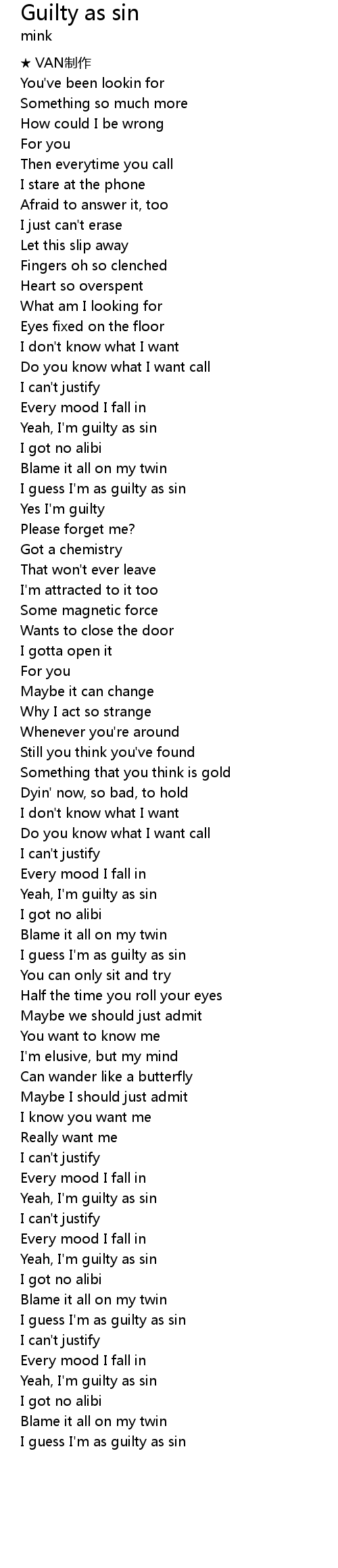| 歌曲 | Guilty as sin |