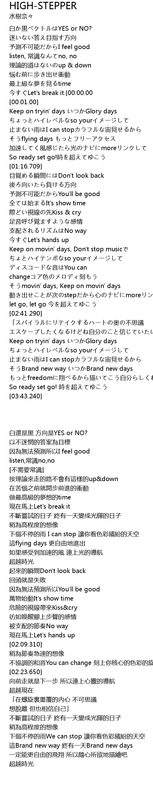 | [02:23.650] | そうmovin' days, Keep on movin' days |