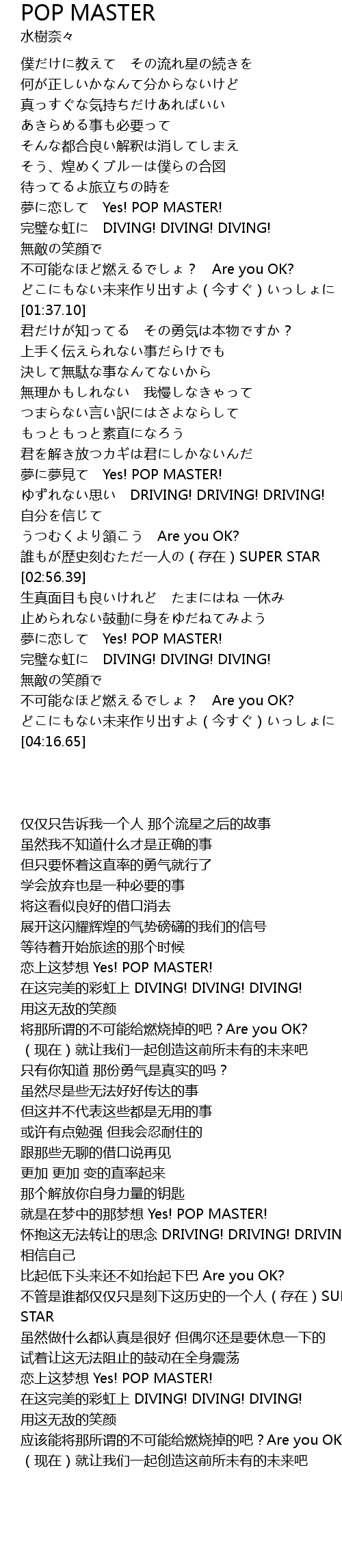 | [02:29.91] | meng meng jian Yes! POP MASTER! |
