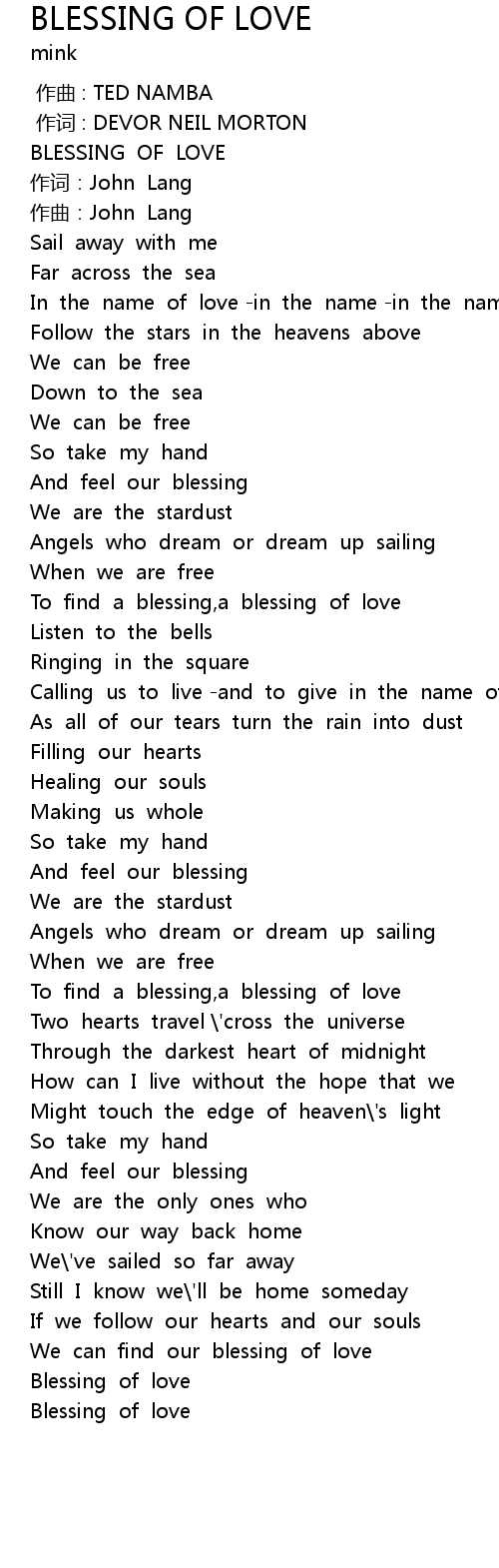 | [00:02.158] | BLESSING OF LOVE |