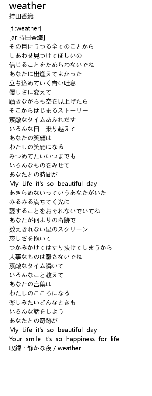 | [01:02.161] | 蹟きながらも空を見上げたら |