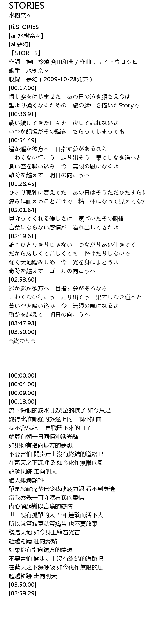 | [00:00.00] | 「STORIES」 |